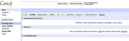Priority Inbox has the ability to learn from the user behaviour, for example, email addresses user replies to or chats with, emails that user tends to opens, etc.  Once the new feature is enabled, any email arriving will be classified into one of three categories in the inbox – Important and unread, Starred, and Everything else.